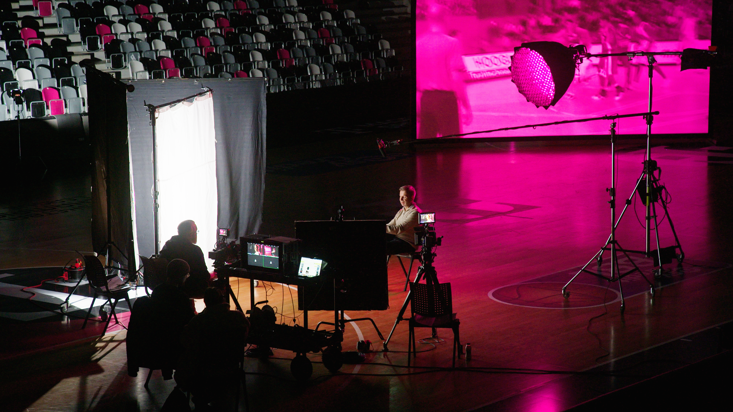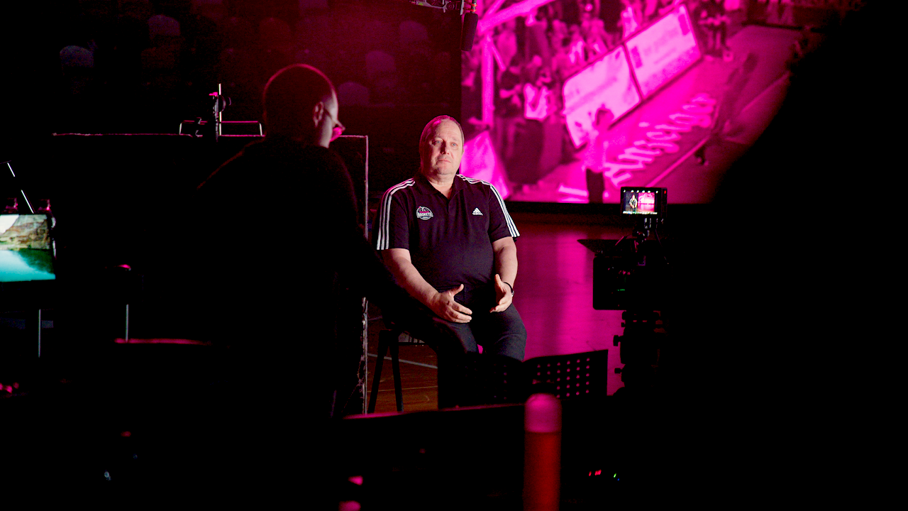 Als ThinXpool und MagentaSport uns mit der Umsetzung beauftragten, begann Regisseur Jonas Wintergalen tief in die Geschichte einzutauchen. Eine Geschichte mit Höhen und Tiefen. Erzählt wird sie durch eine Kombination aus dokumentarischen Reportagen und Interviews. Visuelle Bühne war eine sechs Meter breite Rückprojektionsleinwand, aufgenommen mit RED-Kameras im leeren Telekom Dome.